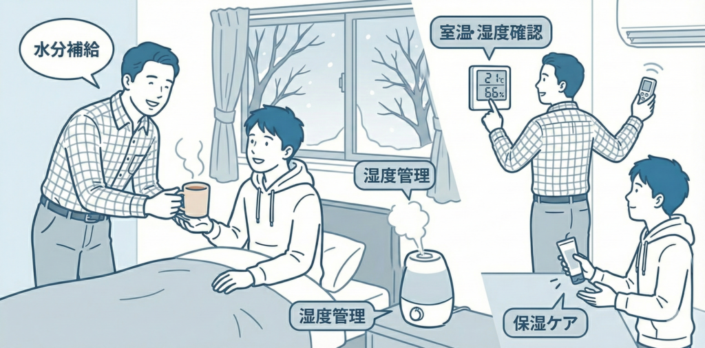 朝晩の冷え込みが厳しくなり、ご利用者の体調変化には特に気を使う時期になったと感じています。衣類での調節はもちろん、乾燥による肌トラブルなども起きやすいため、室温・湿度に気を配ったり、保湿ケア、水分補給の声掛けをマメに丁寧に行うよう心がけています。